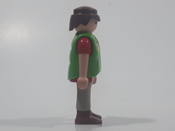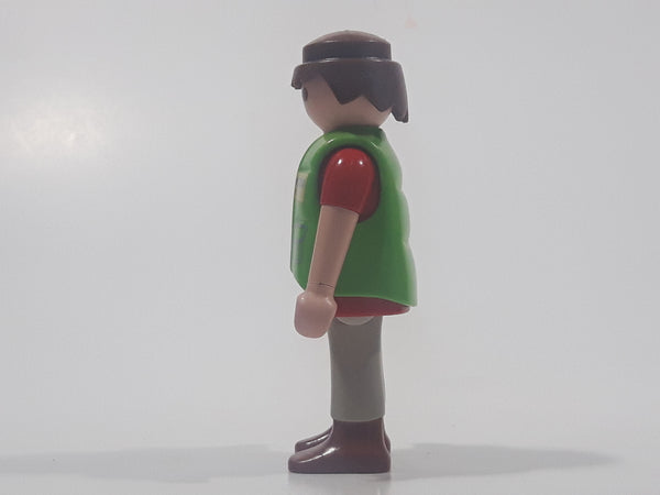 1992 Geobra Playmobil Brown Hair Grey Pants Red Shirt Green Vest 2 3/4" Tall Toy Figure