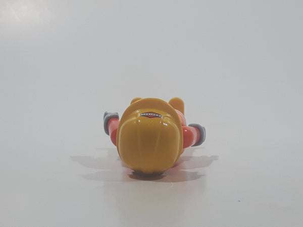 1992 Geobra Playmobil Brunette Hair Bright Orange Pants and Shirt Orange Jacket and Yellow Hard Hat Cap Construction Worker 2 3/4" Tall Toy Figure