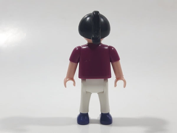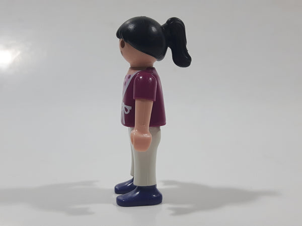 1995 Geobra Playmobil Girl with Black Hair in Purple Top and White Pants 2" Tall Toy Figure