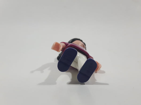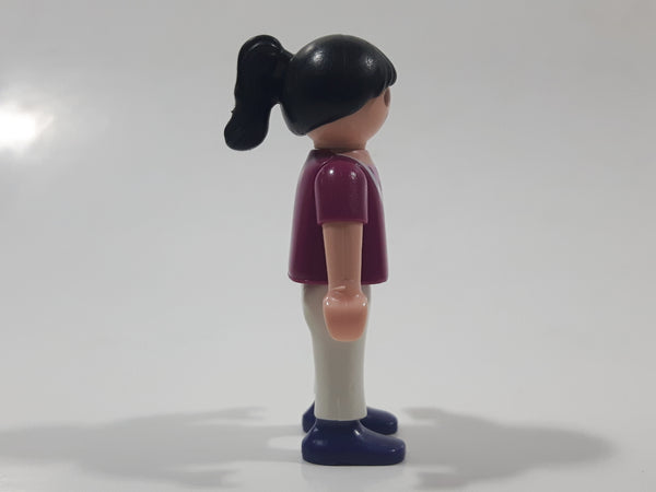 1995 Geobra Playmobil Girl with Black Hair in Purple Top and White Pants 2" Tall Toy Figure