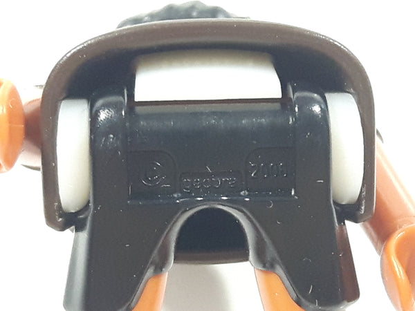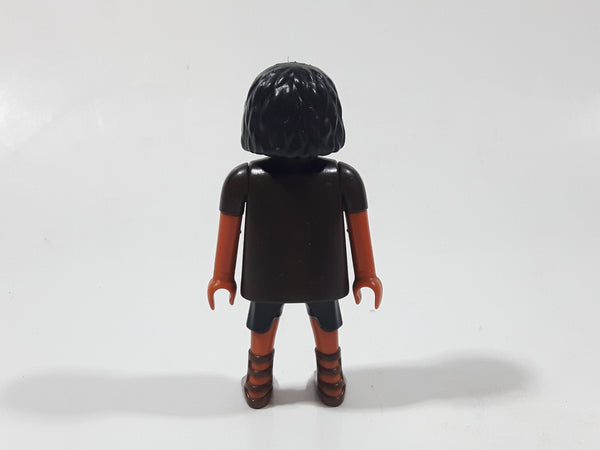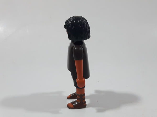 2008 Geobra Playmobil Black Haired Boy Black Bottoms Dark Brown Shirt Brown Laced Sandals 2 7/8" Tall Toy Figure