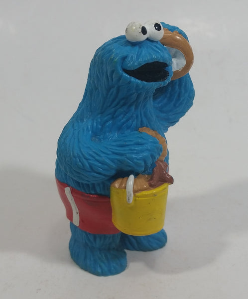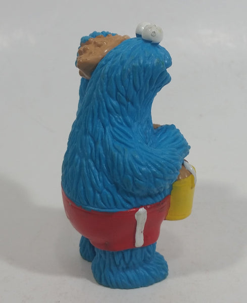 Applause Muppets Sesame Street Cookie Monster Character In Beach Shorts with a Pail of Shells Holding a Conch Shell To His Ear 3" Tall Hard Rubber PVC Toy