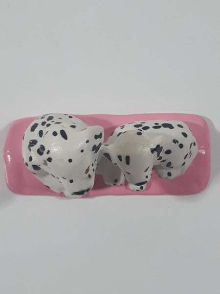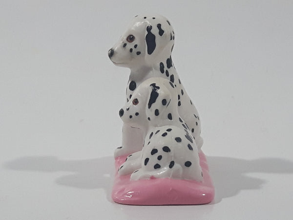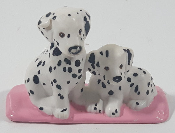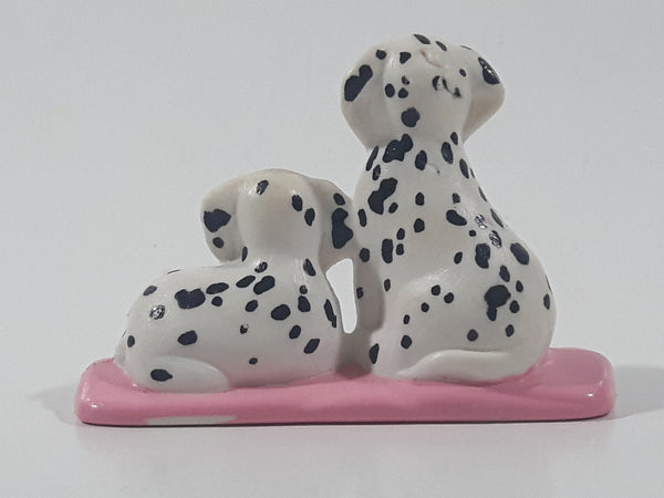 Mother and Baby Puppy Dalmatian Dogs on Pink Blanket 2" Wide PVC Toy Figure