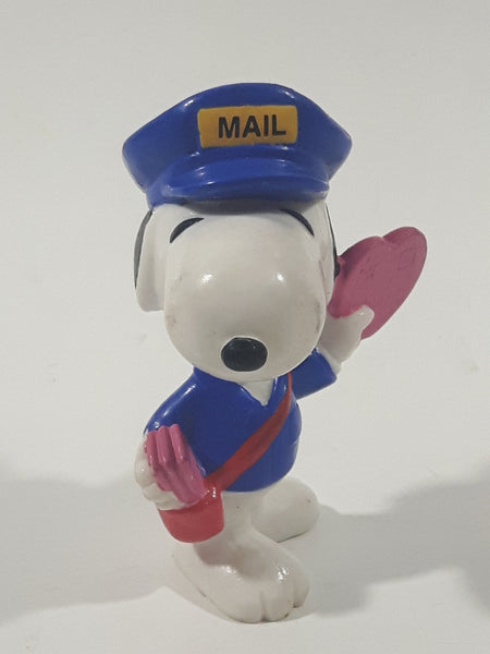United Features Syndicate Peanuts Valentine's Day Mailman Snoopy Holding Pink Heart Shaped Letter 2 1/2" Tall PVC Toy Figure