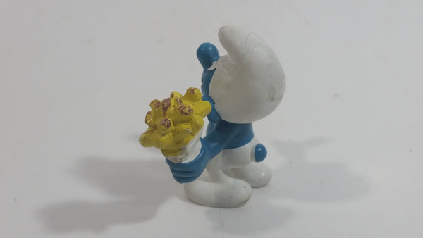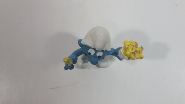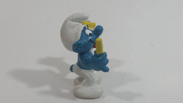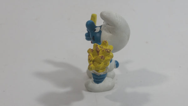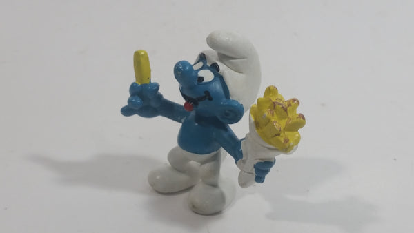 Vintage 1980 Peyo Smurf Character Holding and Eating French Fries PVC Toy Figure