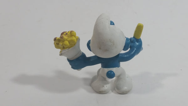 Vintage 1980 Peyo Smurf Character Holding and Eating French Fries PVC Toy Figure