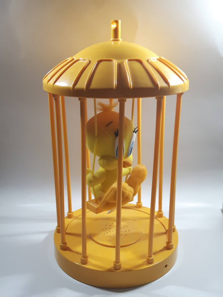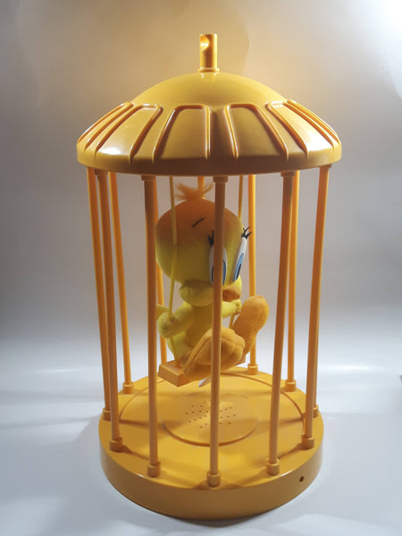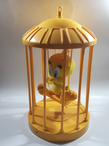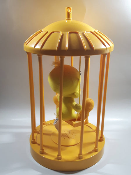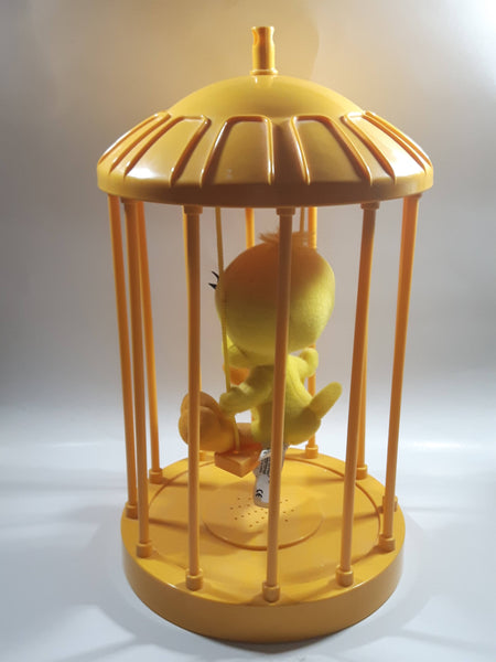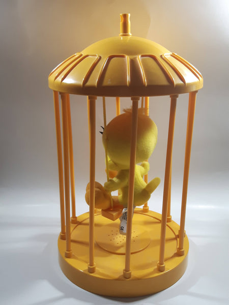 1998 Play By Play Warner Bros. Looney Tunes Tweety Bird Stuffed Plushy on Swing Singing and Talking in 13" Tall Plastic Yellow Cage - Not Working
