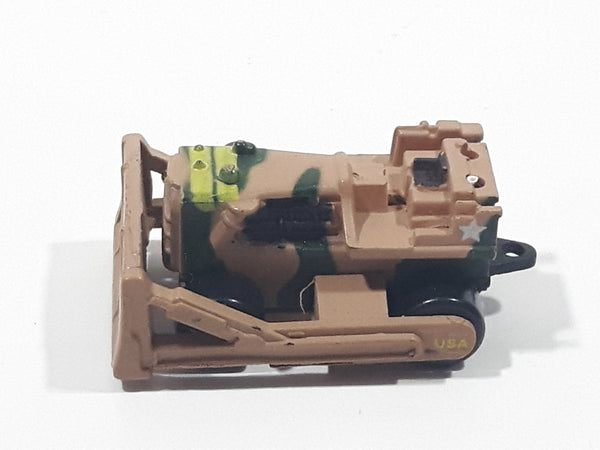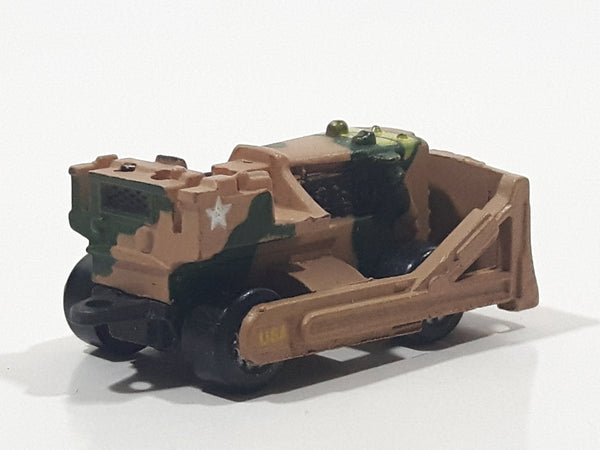 1987 Galoob Micro Machine Bull Dozer USA Military Camouflage Brown Miniature Die Cast Toy Car Vehicle