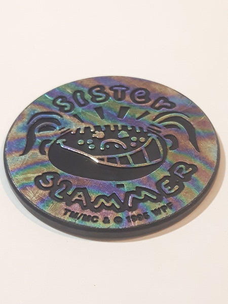 1995 WPF Pog Canada Games Sister Slammer Rainbow and Black Plastic Caps Pog Slammer