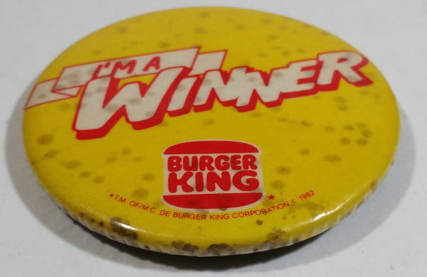 Vintage 1982 Burger King Restaurants I'm A Winner Employee Promotional Round Button Pin