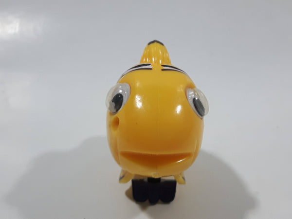 Yellow Fish with Black and White Stripes Wind Up Plastic 3" Long Toy Figure