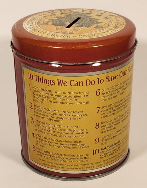 1990 Judith Ann Griffith Sunrise Publications 10 Thinks We Can Do To Save Our Planet 5" Tall Tin Metal Coin Bank