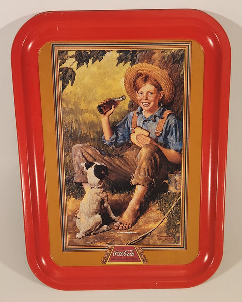 1991 Coca Cola Norman Rockwell Barefoot Boy 10 1/4" x 13 3/4" Metal Beverage Serving Tray