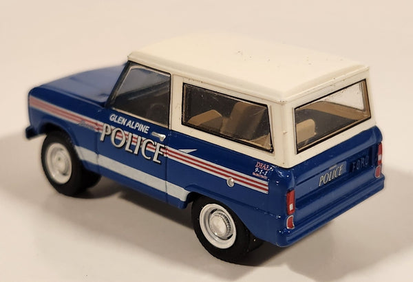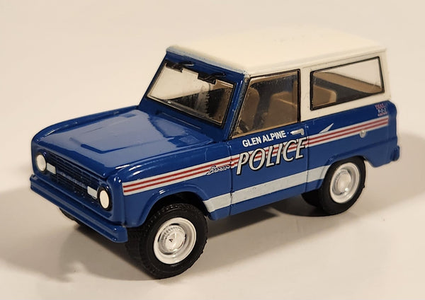 2013 Greenlight Hot Pursuit GL063 1967 Ford Bronco Glen Alpine Police Blue and White Die Cast Toy Car Vehicle with Opening Hood