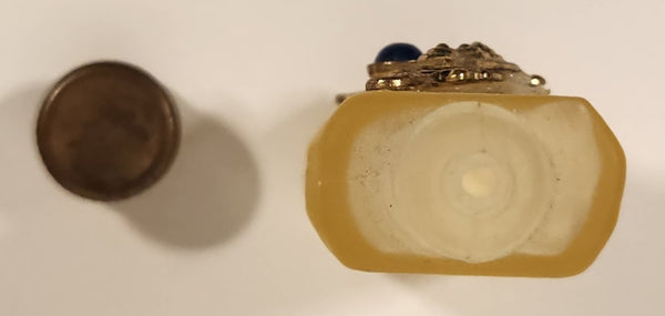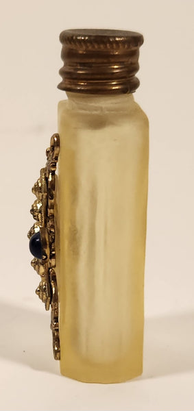 Antique Czech Jeweled Ornate Gold Design with Blue Stone Frosted White Glass Miniature 2 1/4" Perfume Bottle