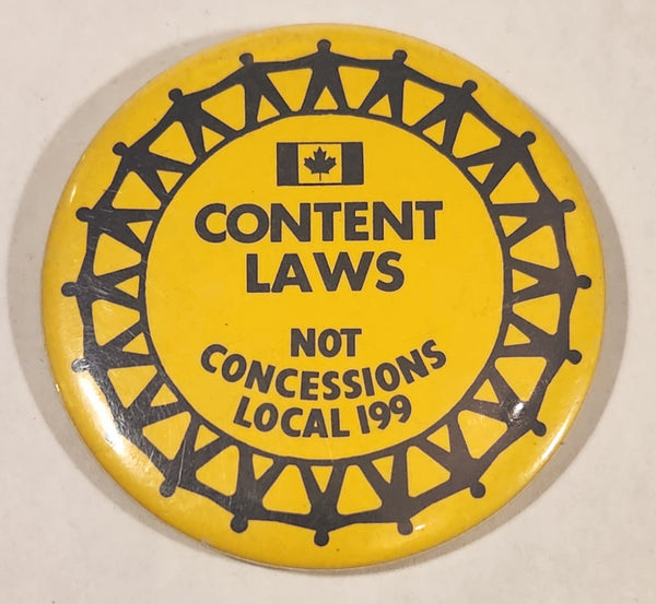 Canadian Content Laws Not Concessions Local 199 Union 2 1/2" Round Button Pin