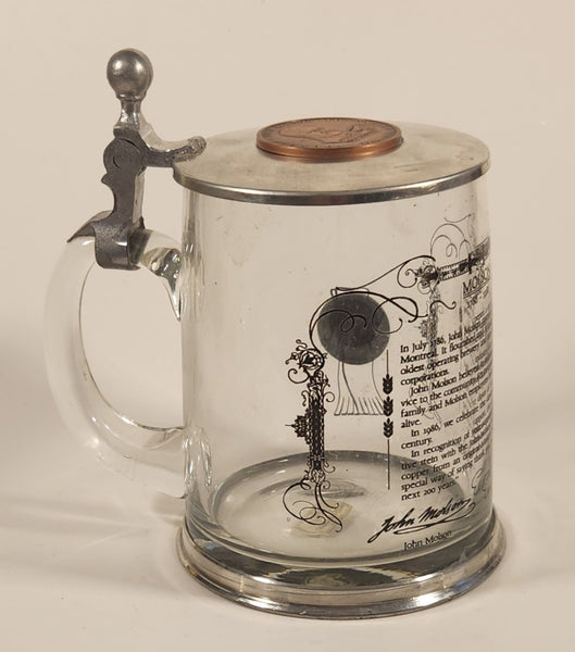 Rare Rastal Molson 1786-1986 200th Annivesary Founder John Molson Clear Glass Beer Mug with Metal Lid
