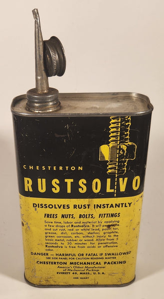 Vintage 1950s Chesterton Rustsolvo Dissolves Rust Instantly Yellow and Black On Quart Metal Can Everett 49, Mass., U.S.A.
