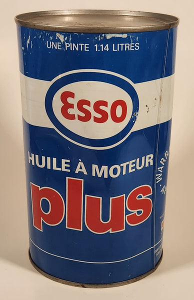 Vintage Esso Plus Motor Oil One Quart 1.14 Litres Blue Metal Can FULL