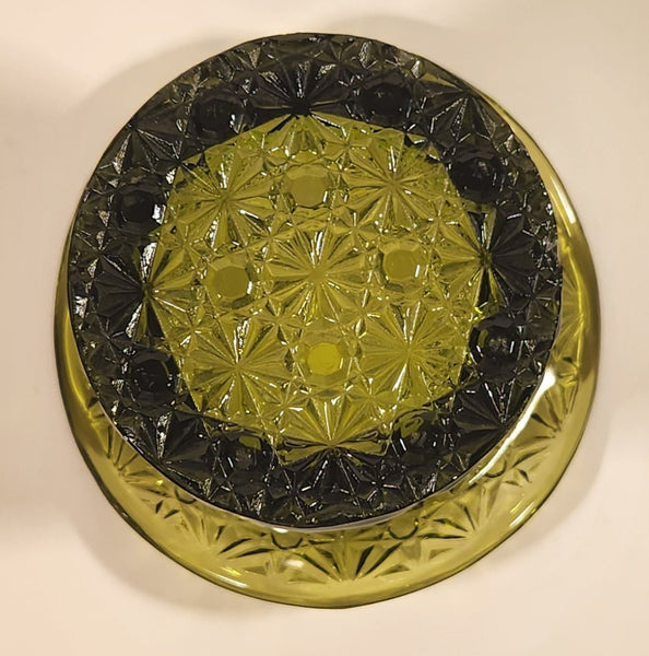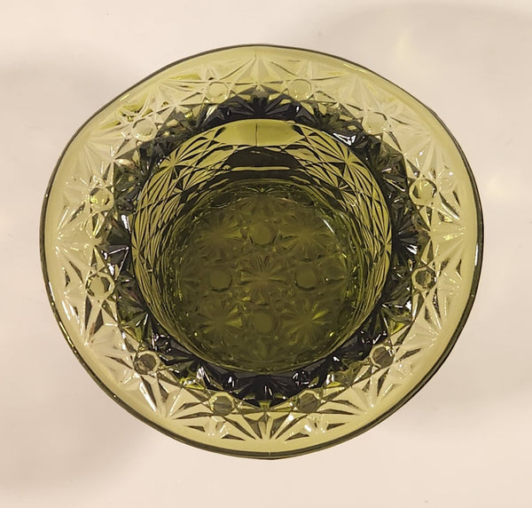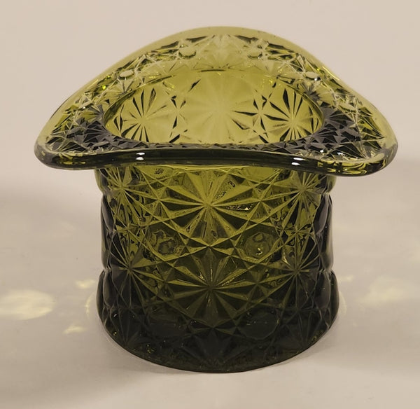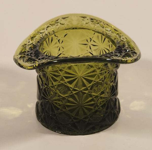 Vintage Fenton LG Wright Daisy & Button Avocado Green Glass Top Hat Vase