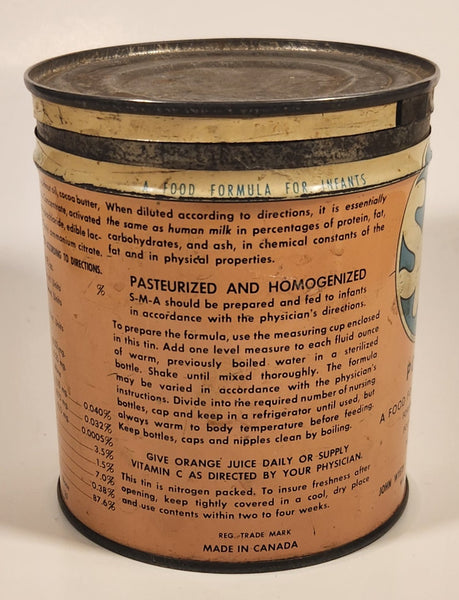Vintage John Wyeth & Brother (Canada) Ltd Walkerville, Ontario SMA Powder A Formula For Infants 4 3/4" Tin Metal Can