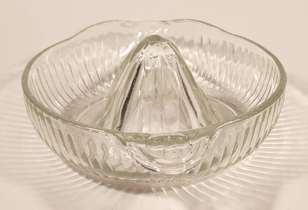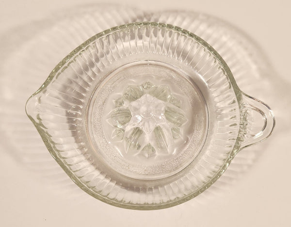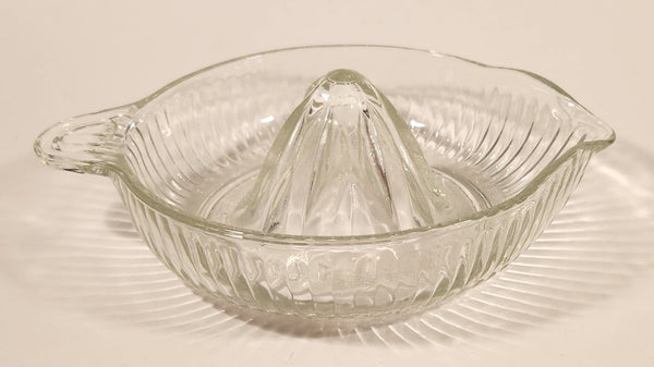 Vintage Lemon Hand Juicer Reamer Thin Ribbed Depression Glass Bowl with Handle and Pour Spout