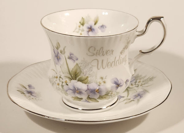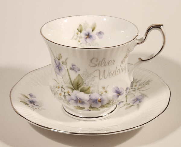 Vintage Rosina China Co Ltd. Queen's Fine Bone China Silver Wedding Tea Cup & Saucer Set
