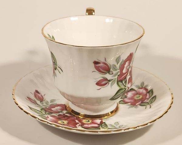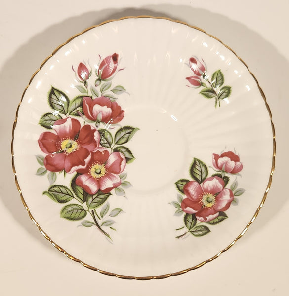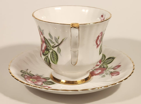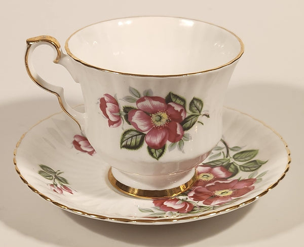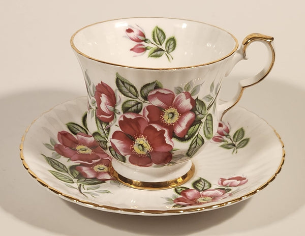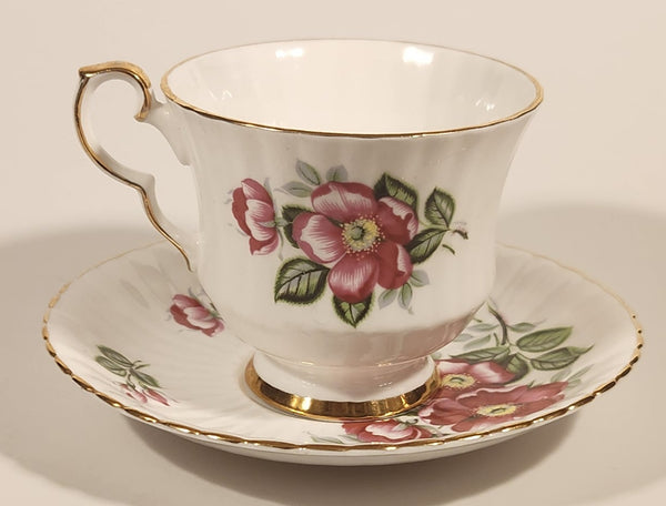 Vintage Royal Windsor Bone China Floral Emblem of Alberta The Wild Rose Red Roses Flowers Tea Cup & Saucer Set