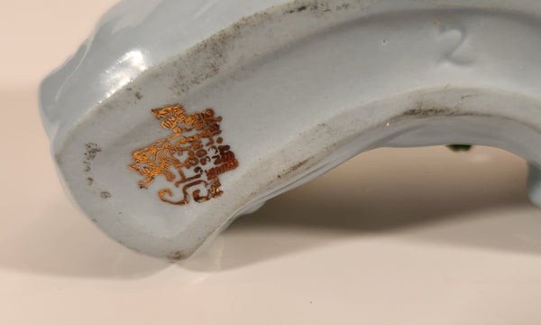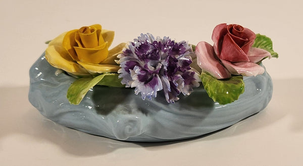 Vintage Stanley Bone China England Miniature Blue Curved Log Porcelain Floral Flower Bouquet