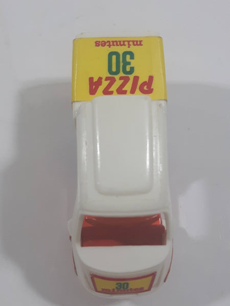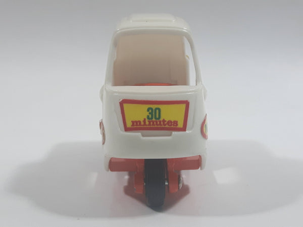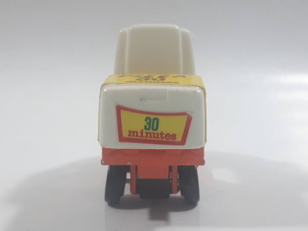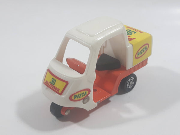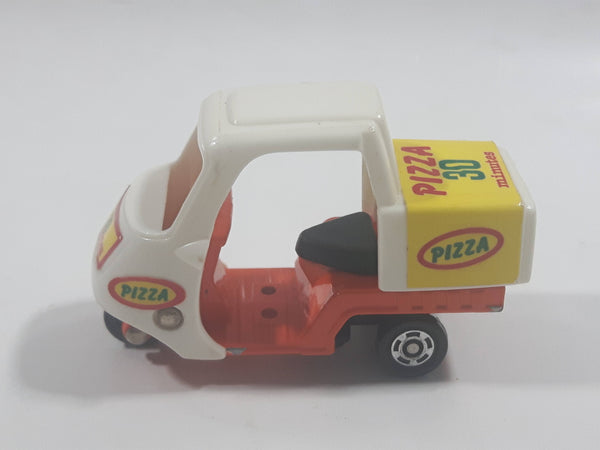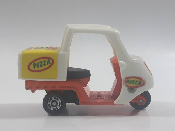 1990s Tomy Tomica No. 82 Pizza Delivery Bike Pizza 30 Minutes White and Orange 1/76 Scale Die Cast Toy Car Vehicle Missing The Driver
