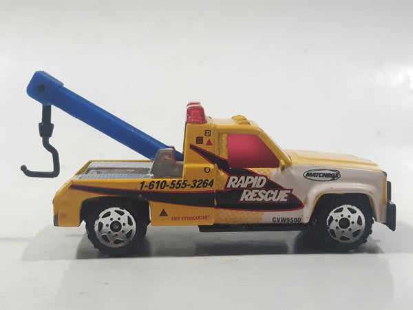 2002 Matchbox Service Station GMC Wrecker Tow Truck Rapid Rescue Yellow Die Cast Toy Car Vehicle