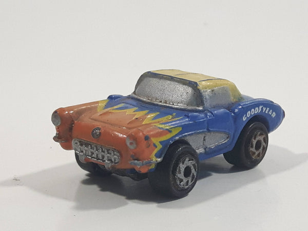 Galoob Micro Machines Ultrafast '57 Chevy Corvette Blue with Orange Flames Miniature Tiny Die Cast Toy Car Vehicle