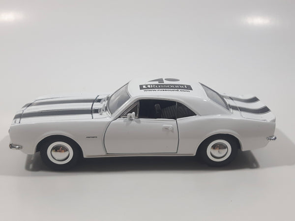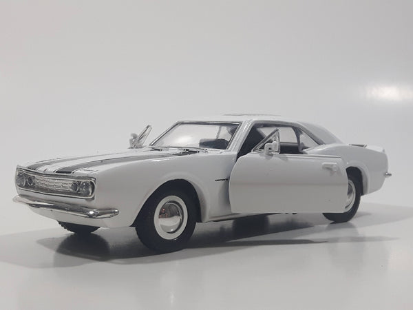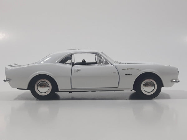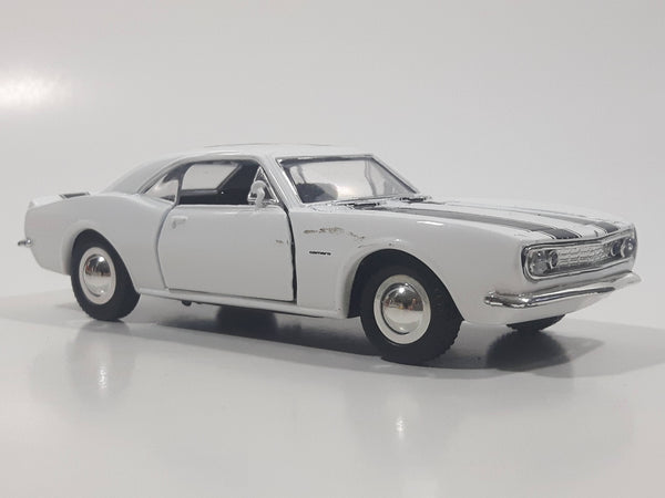 Sunnyside Superior 1967 Camaro Russound White 1/34 Scale Pullback Motorized Friction Die Cast Toy Car Vehicle with Opening Doors and Hood