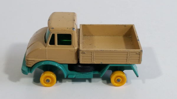 Vintage 1967 Lesney No. 49 Mercedes Benz Unimog Tan and Aqua Teal Die Cast Toy Car Vehicle Made in England