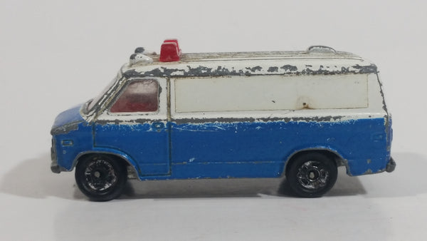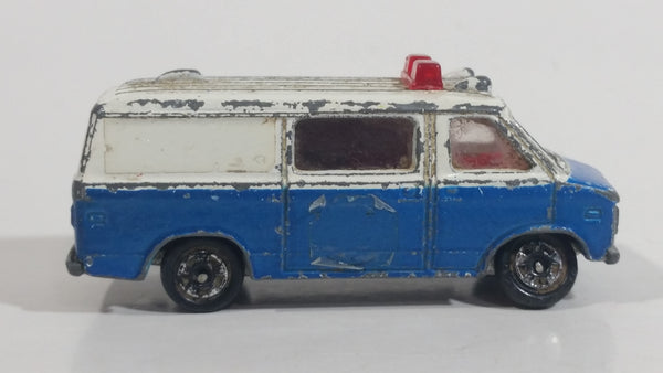 Vintage 1977 Tomy Tomica Chevrolet Chevy Van Sheriff Police Cops No. F22 White Blue 1/79 Scale Die Cast Toy Car Emergency Rescue Vehicle Made in Japan