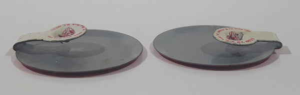 Vintage Go Mod Pink with White Letters Fold Over Style 1" Metal Tab Clip Pin Set of 2