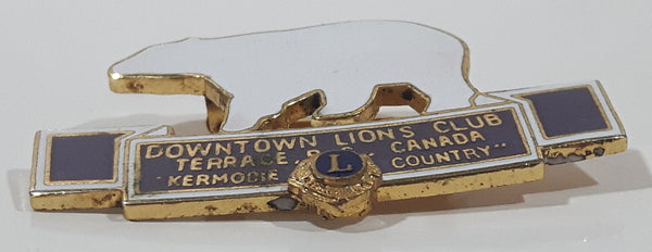 Vintage Lions Club Downtown Terrace, B.C. Canada "Kermodie Country" Polar Bear Themed 1 1/8" x 1 3/4" Enamel Metal Lapel Pin