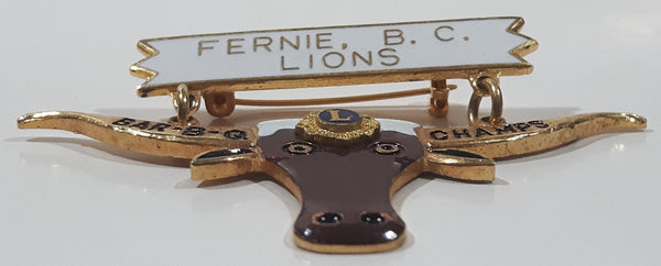 Vintage Lions Club Fernie B.C. Bar-B-Q Champs 1 1/2" x 2 1/4" Enamel Metal Lapel Pin