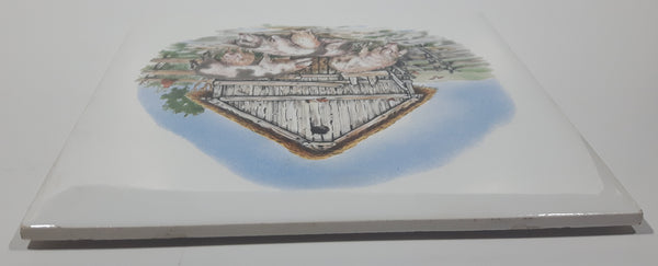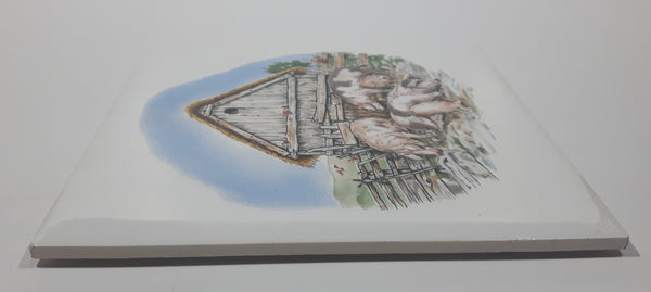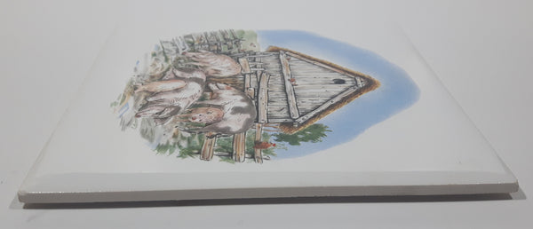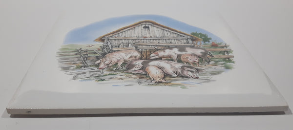 Vintage Mud Covered Pigs and Barn Themed 6" x 6" Ceramic Tile Trivet
