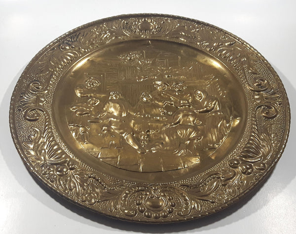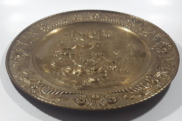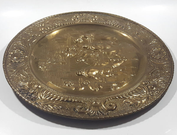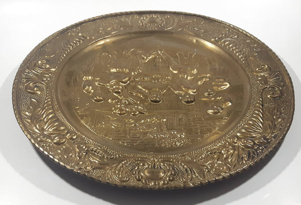 Vintage Pilgrim Pub 3D Hammered Brass 14" Brass Tone Metal Plate Wall Hanging