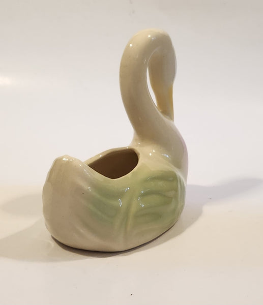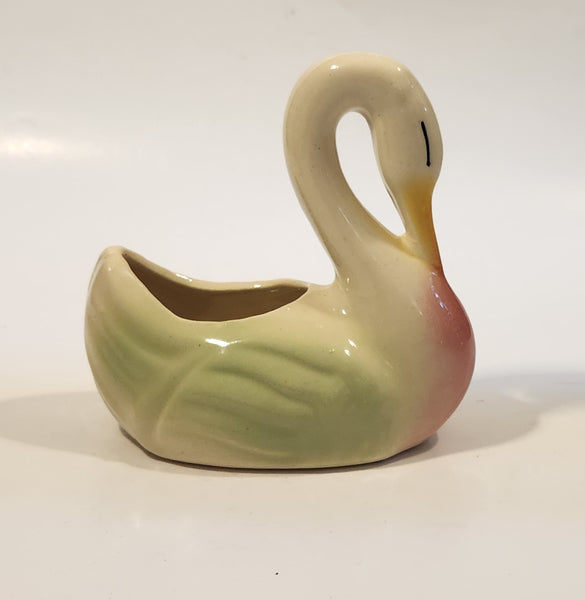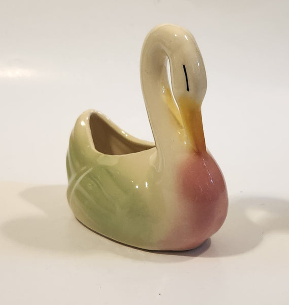 Vintage Pink Green White 5 1/4" Long Swan Bird Planter