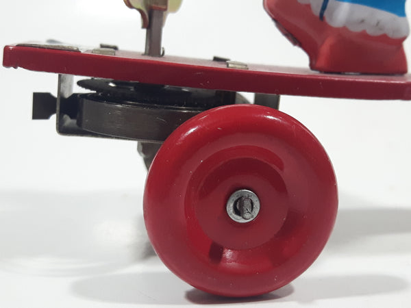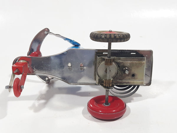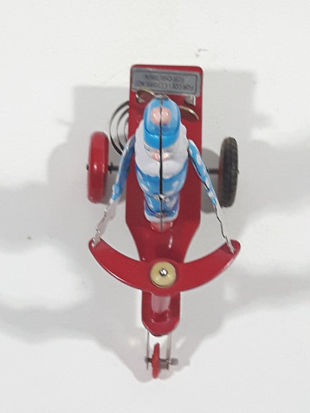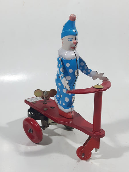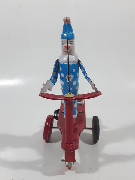 Vintage Roli Zoli Blue Clown with White Spots on Red Tricycle Bike 5 1/2" Tall Tin Metal Key Wind Up Toy Made in China