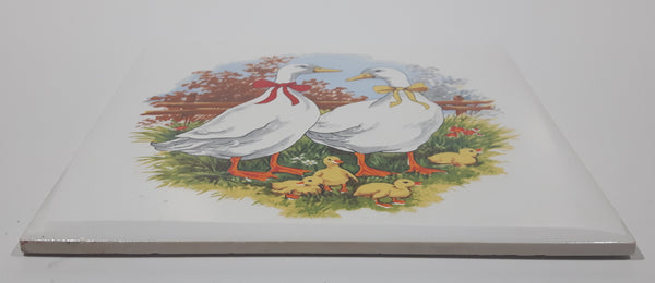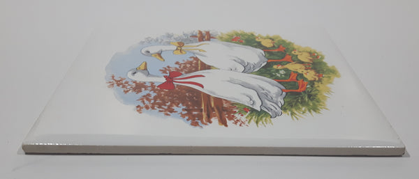 Vintage White Goose Birds and Baby Chicks Themed 6" x 6" Ceramic Tile Trivet