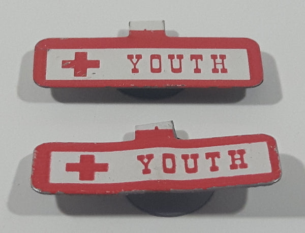 Vintage Youth Red Cross Fold Over Style 1/4" x 7/8" Metal Tab Clip Pin Set of 2