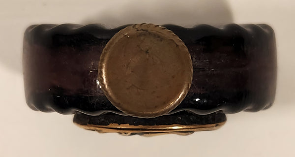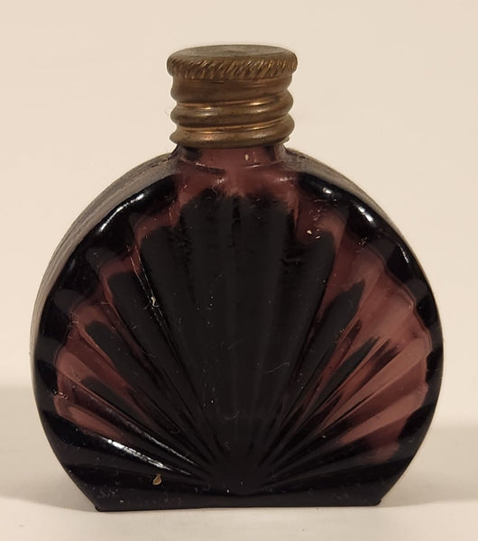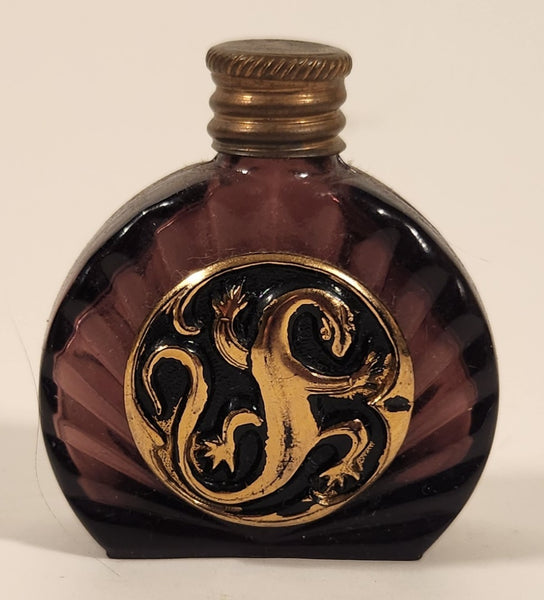 Antique Czech Ornate Gold Lizard Design Clamshell Dark Purple Amethyst Glass Miniature 1 7/8" Perfume Bottle