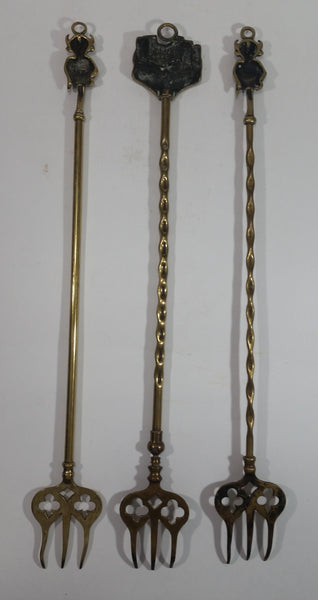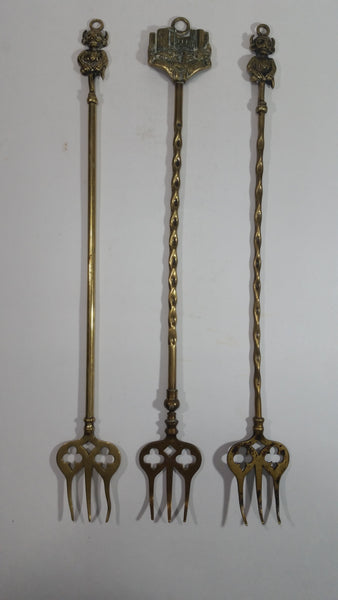 Antique Lincoln Imp Devil and Ludlow Castle 19" Solid Brass Toasting Forks Set of 3