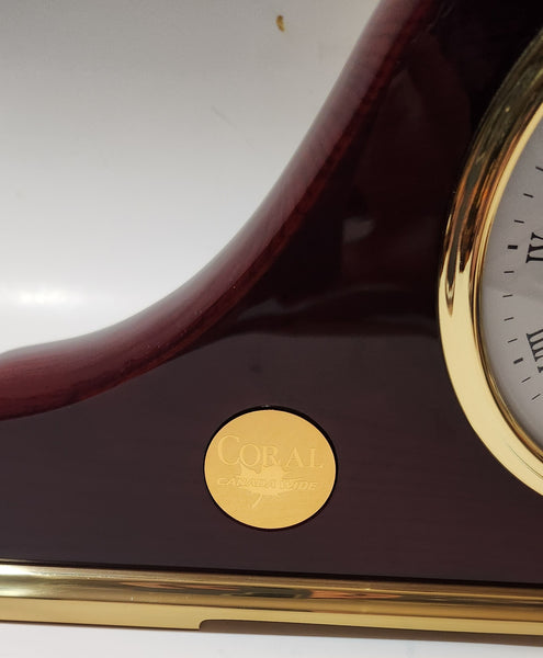 Coral Canada Wide Rosewood Cased Gold Plated Base Advertising Mantel Clock
