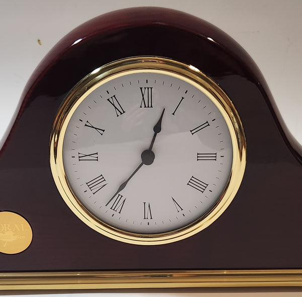 Coral Canada Wide Rosewood Cased Gold Plated Base Advertising Mantel Clock