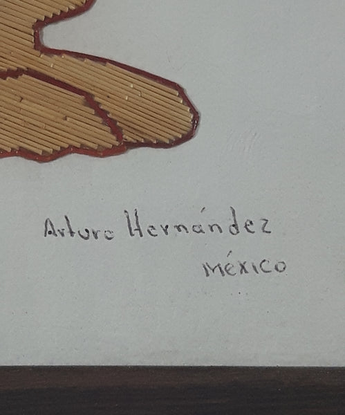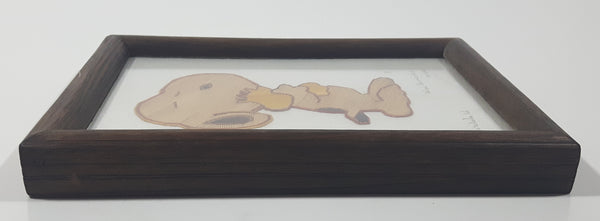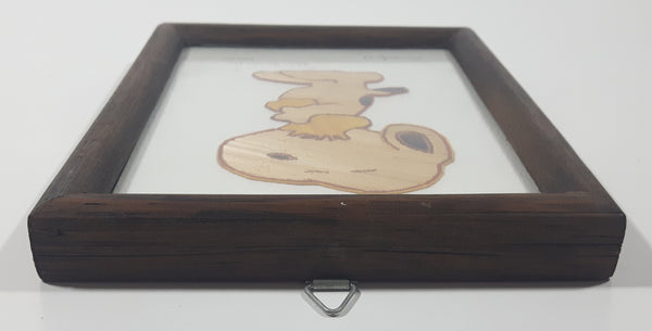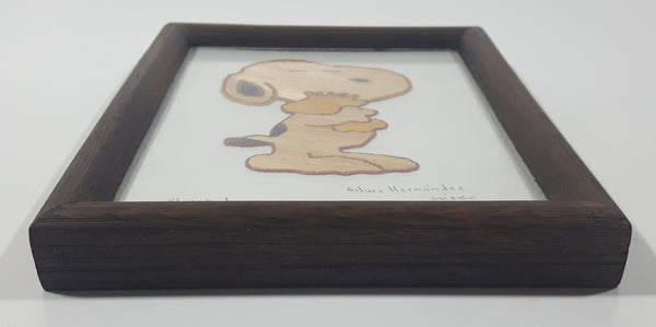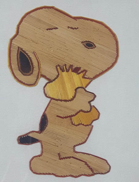 Rare Vintage Snoopy Hugging Woodstock Detailed Fine Stick Art 5 1/2" x 7 1/8" Framed Picture Pto Vallarta, Jal Arturo Hernandez Mexico