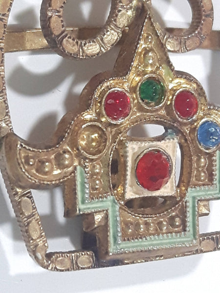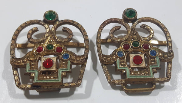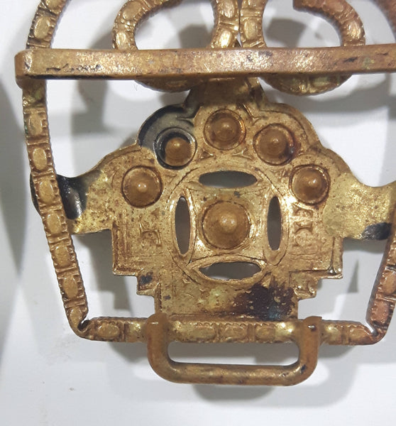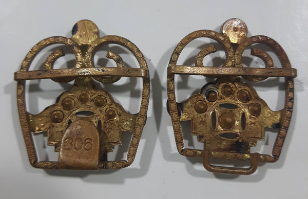 Antique 19th Century Art Deco Royal Crown Shaped Metal Woman's 2 Part Belt Buckle Sash Connects Together